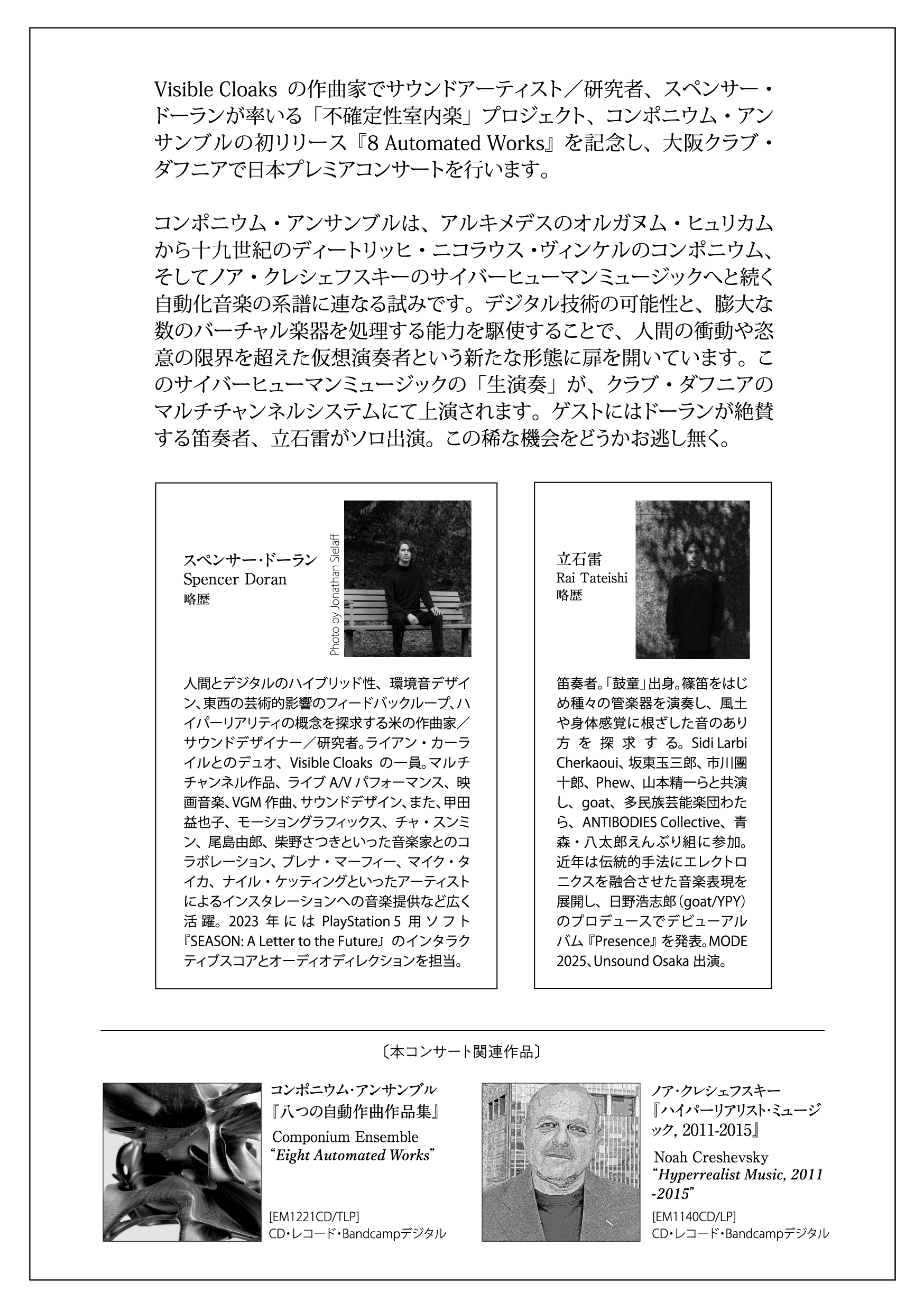 プロジェクト、コンポニウム・アンサンブルの初リリース『8 Automated Works』を記念し、大阪クラブ・ダ