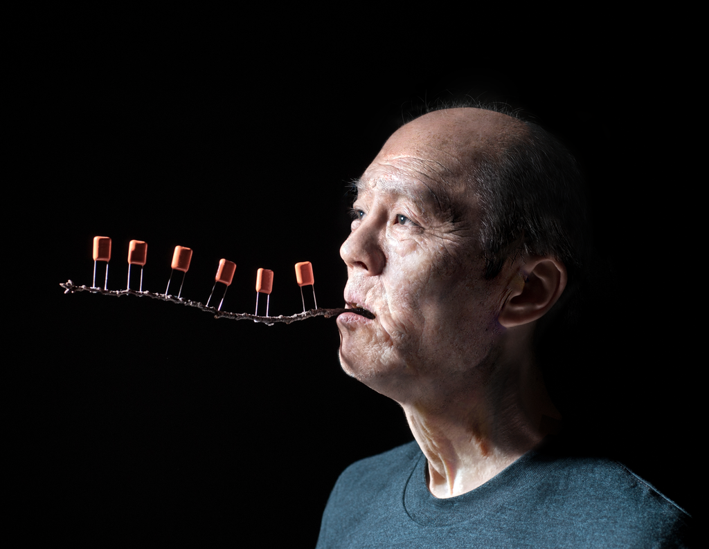 His striking artist photograph is those in which he has aged himself following the “Yatsushi” aesthetic, which he considers an essential element of Japanese deep culture.